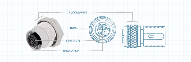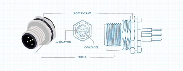 The core structural elements of a circular connector are further broken down as follows: